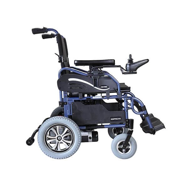 The Karma KP25 Power Wheelchair is Ideal for medium-short travel distances. Its lightweight and compact design features a tool-less foldable frame with a removable, compact, battery pack.