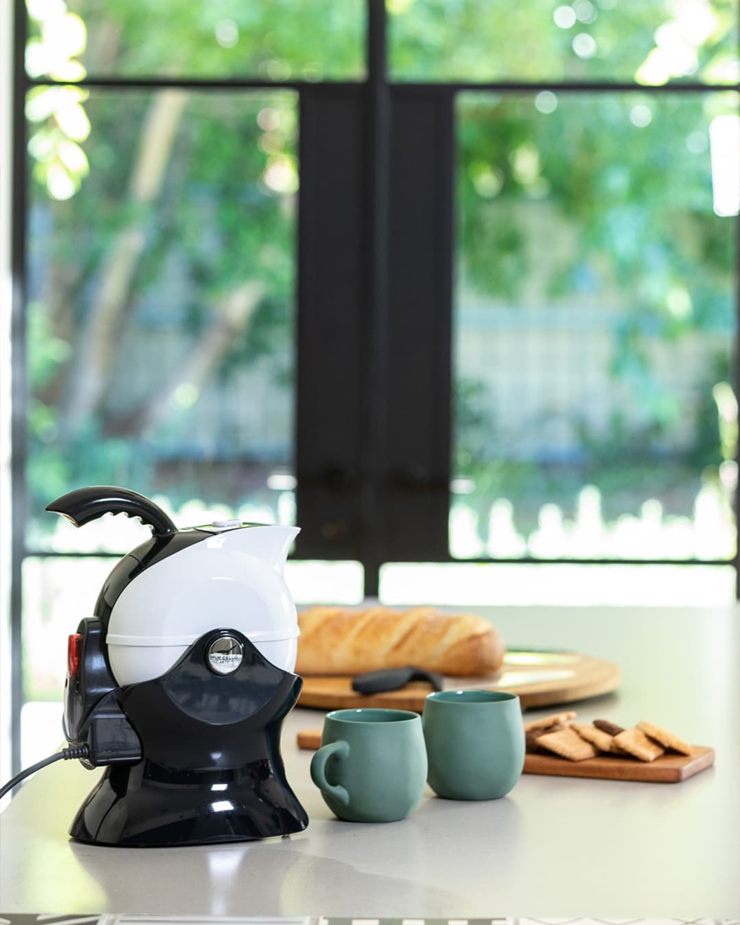 The water level indicator assists the user to ensure it isn’t overfilled. The base is non-slip and weighted.