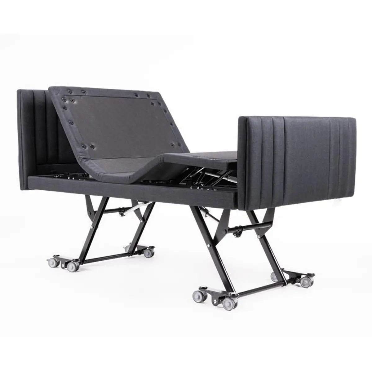 The next generation Jannali multi-function bed offers a range of benefits for those seeking enhanced comfort, safety, and support in their sleep or rest routines.With five different preset positions and two memory functions, the Jannali bed offers precise customisation for optimal support and comfort, setting it apart as a premier choice for healthcare.The patented autoregression section is built into the bed base to decrease pressure on the abdominal area and reduce shear forces on the occupant. The Jannali also features Trendelenburg, and reverse Trendelenburg positioning.The full-featured Jannali has various convenient features, including a standard wired USB handset (or downloadable phone App), battery backup, and USB ports for charging devices Available in long single and king single sizes.The Alivio Jannali bed features electric adjustable height, providing one of the lowest platform heights available on the market. This ensures easy access and maximum comfort for patients, along with a non-entrapment zone which stops the bed from touching the ground for additional safety. Choose the Alivio Jannali Multi-Function Electric Bed to deliver the ultimate in comfort and functionality for your patients.